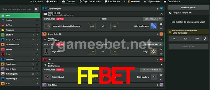 O FFbet oferece uma grande seleção de opções de apostas em e-sports com probabilidades competitivas